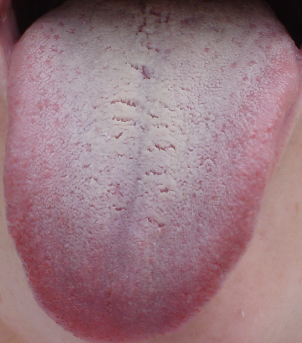 Jazyk má tenký bílý povlak.